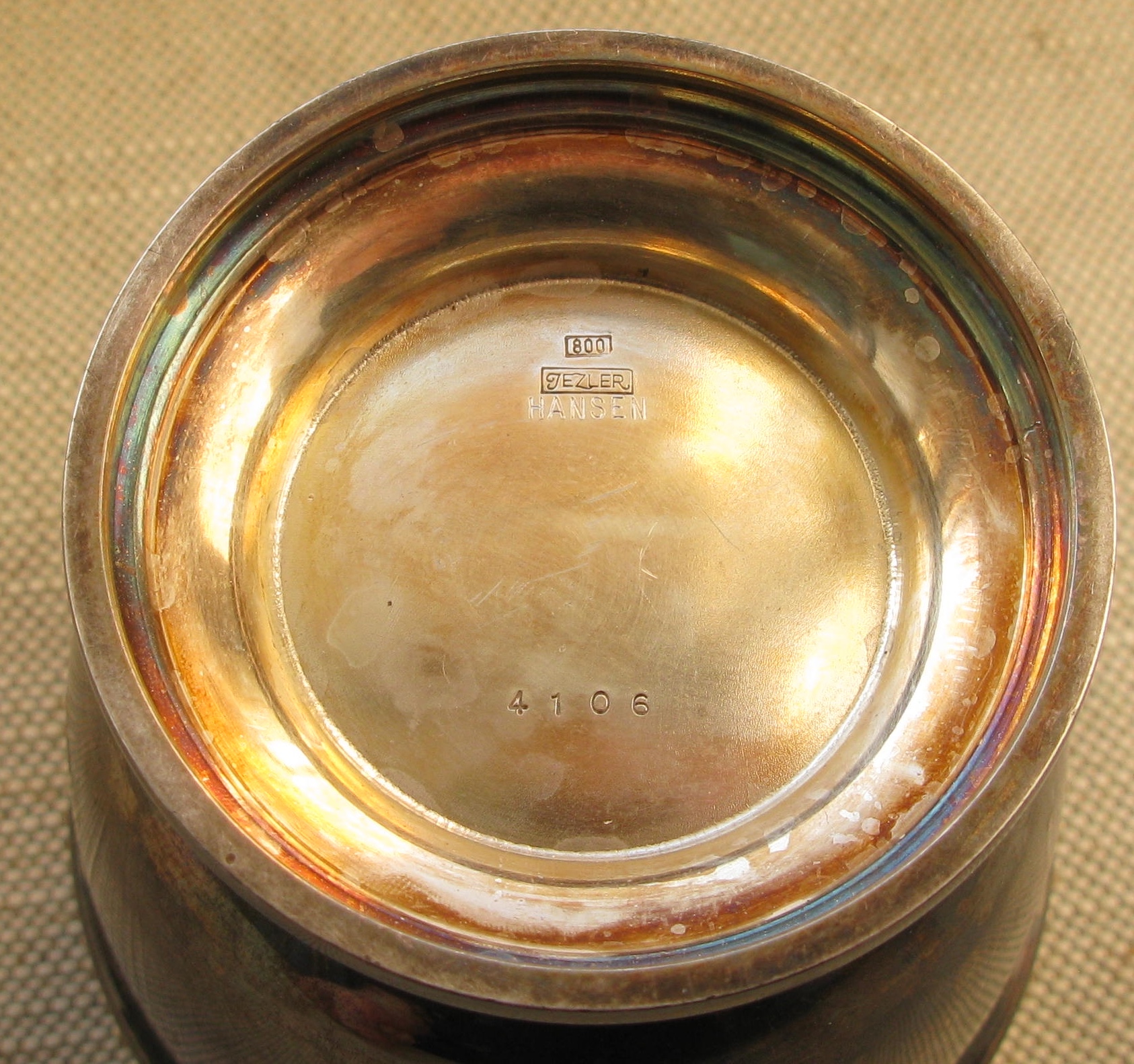 Купить Позвонить: 8 (917) 522-46-34Бокал, серебро 800 проба, Jezler & Cie. Швейцария, 150 грамм, 90мм высота, 73мм диаметр.