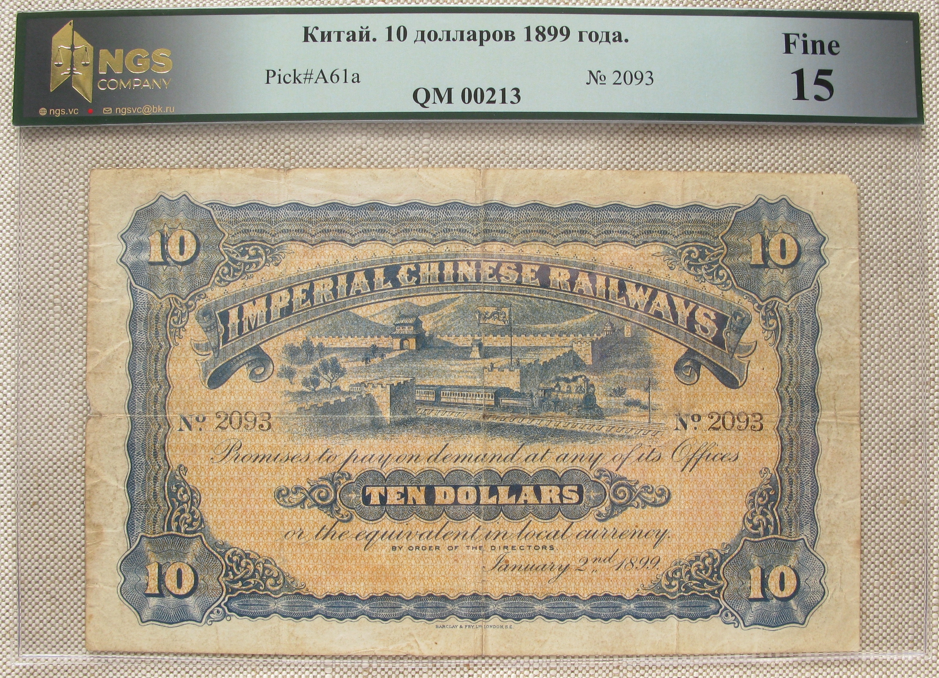 ДОПОЛНИТЕЛЬНО: China Empire Imperial Chinese Railways 10 Dollars. Pick A61a.