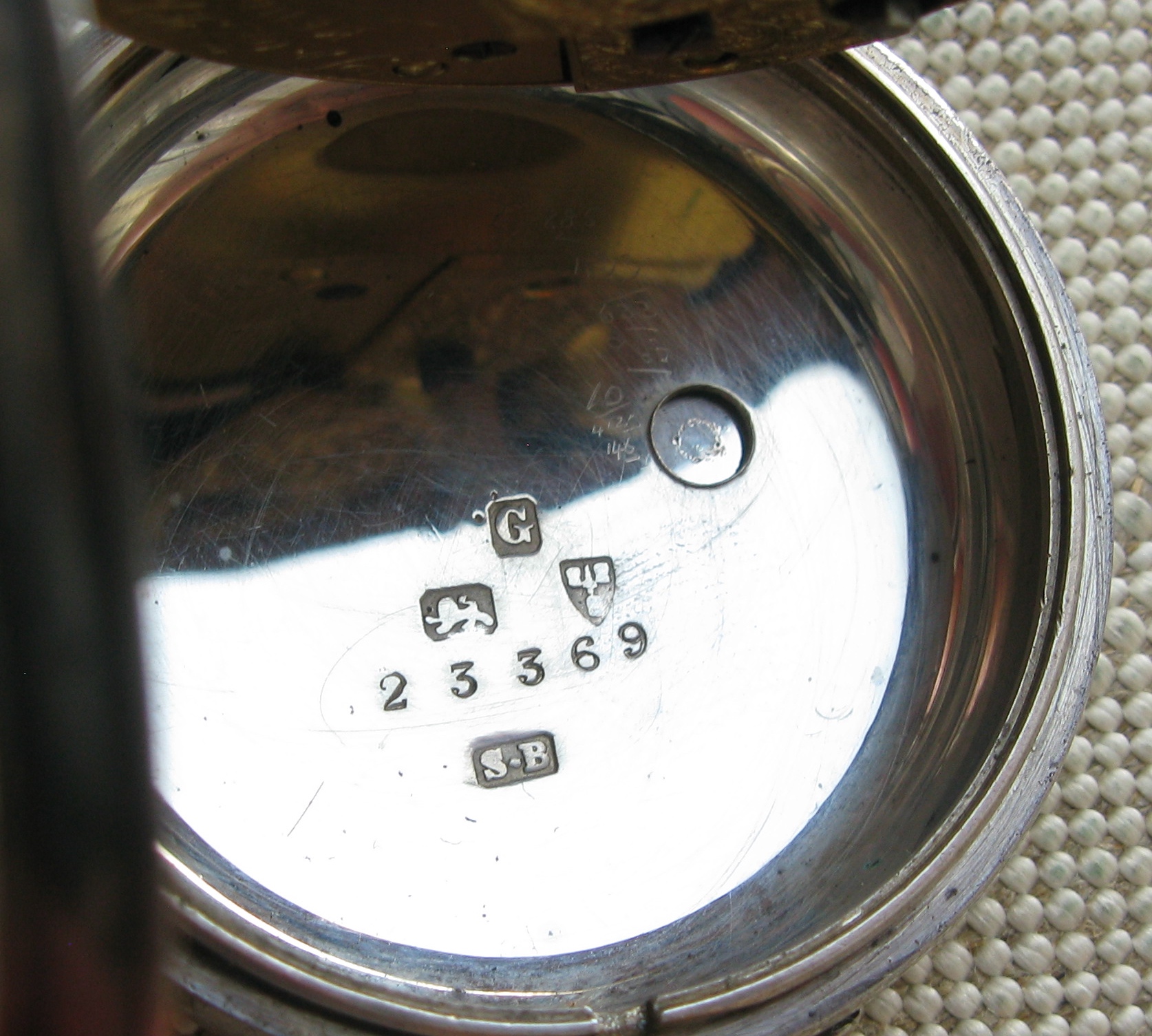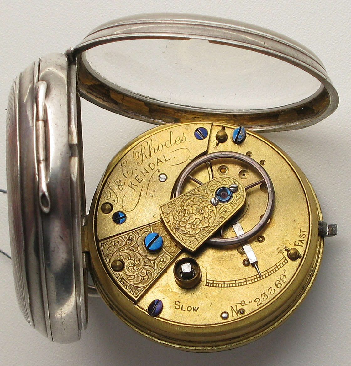 Часы карманные диаметр 40 мм серебро 925 проба Англия механизм T. & E. Rhodes Kendal корпус Честер 1890г.