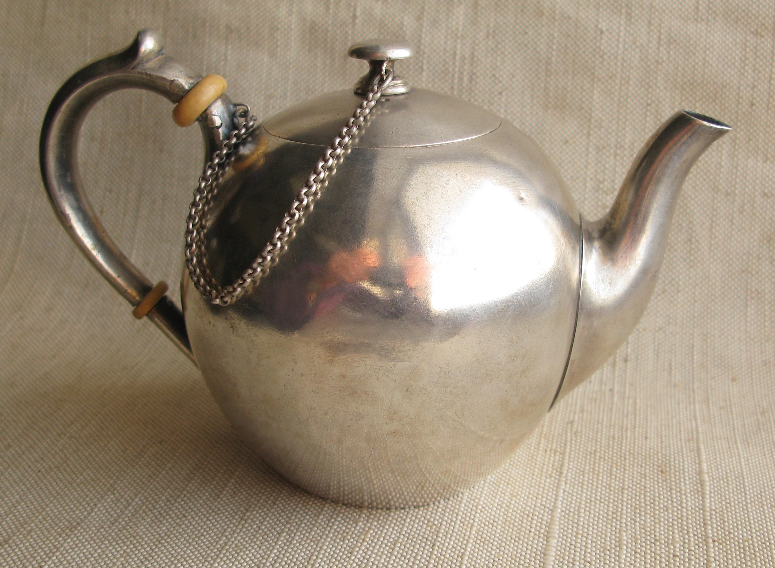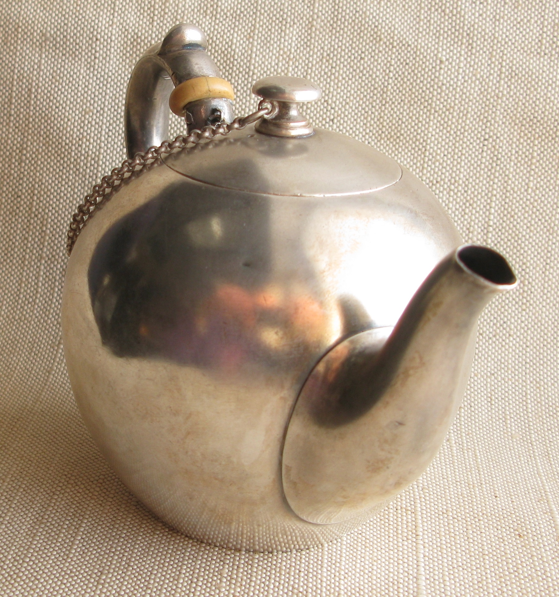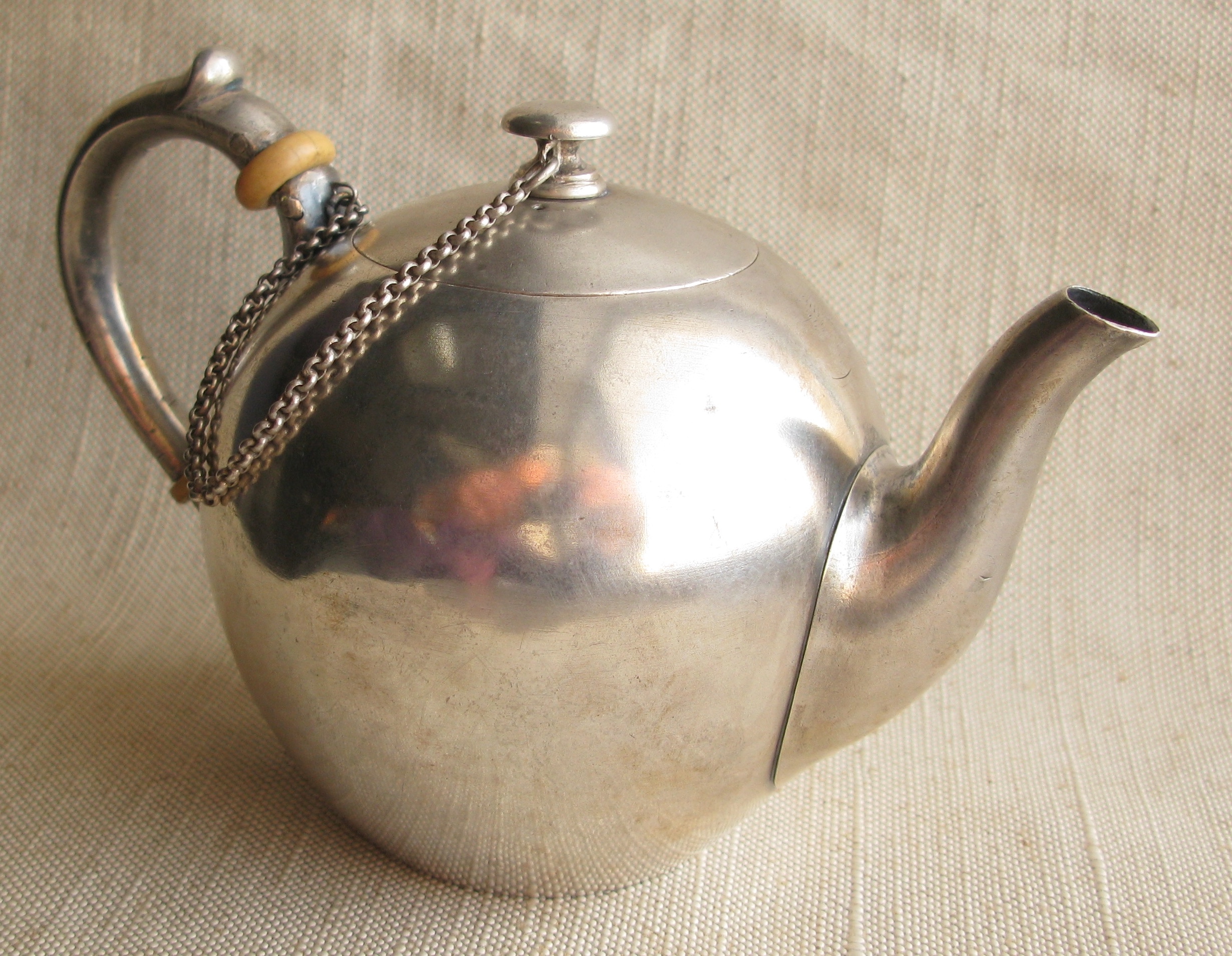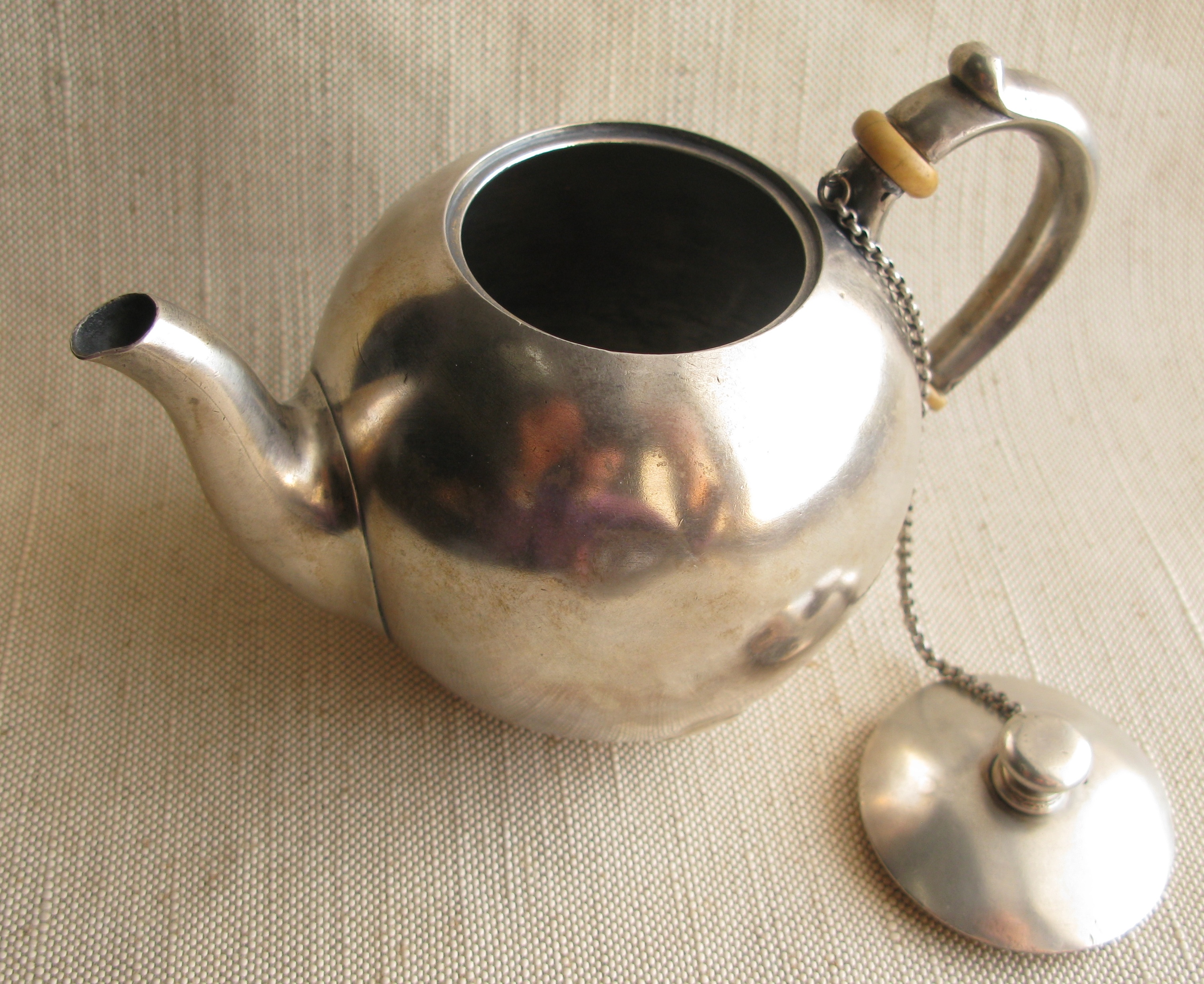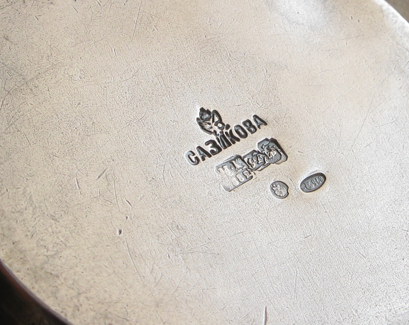 Продано Позвонить: 8 (917) 522-46-34Чайник, Сазиков, 1882г., Россия, Москва, 84 проба, 302грамма, реставрация корпуса, на фото видно. высота 107мм.