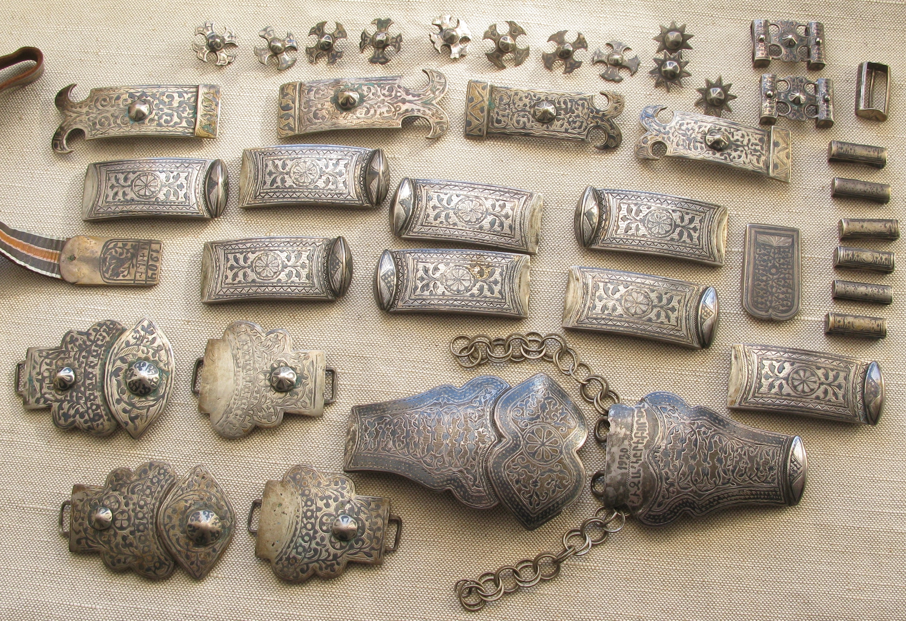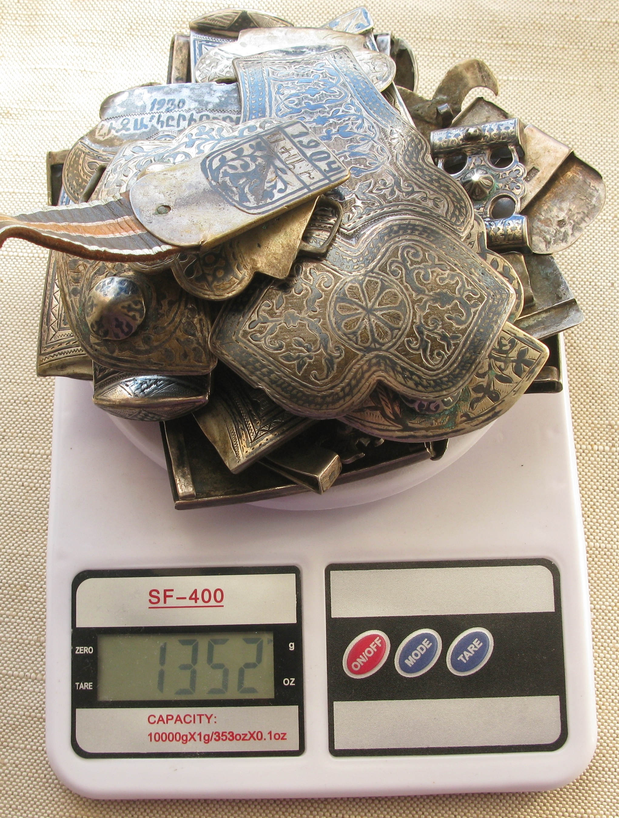 Детали армянских поясов, серебро 84 проба, 1904, 1930 гг, 1350 грамм.