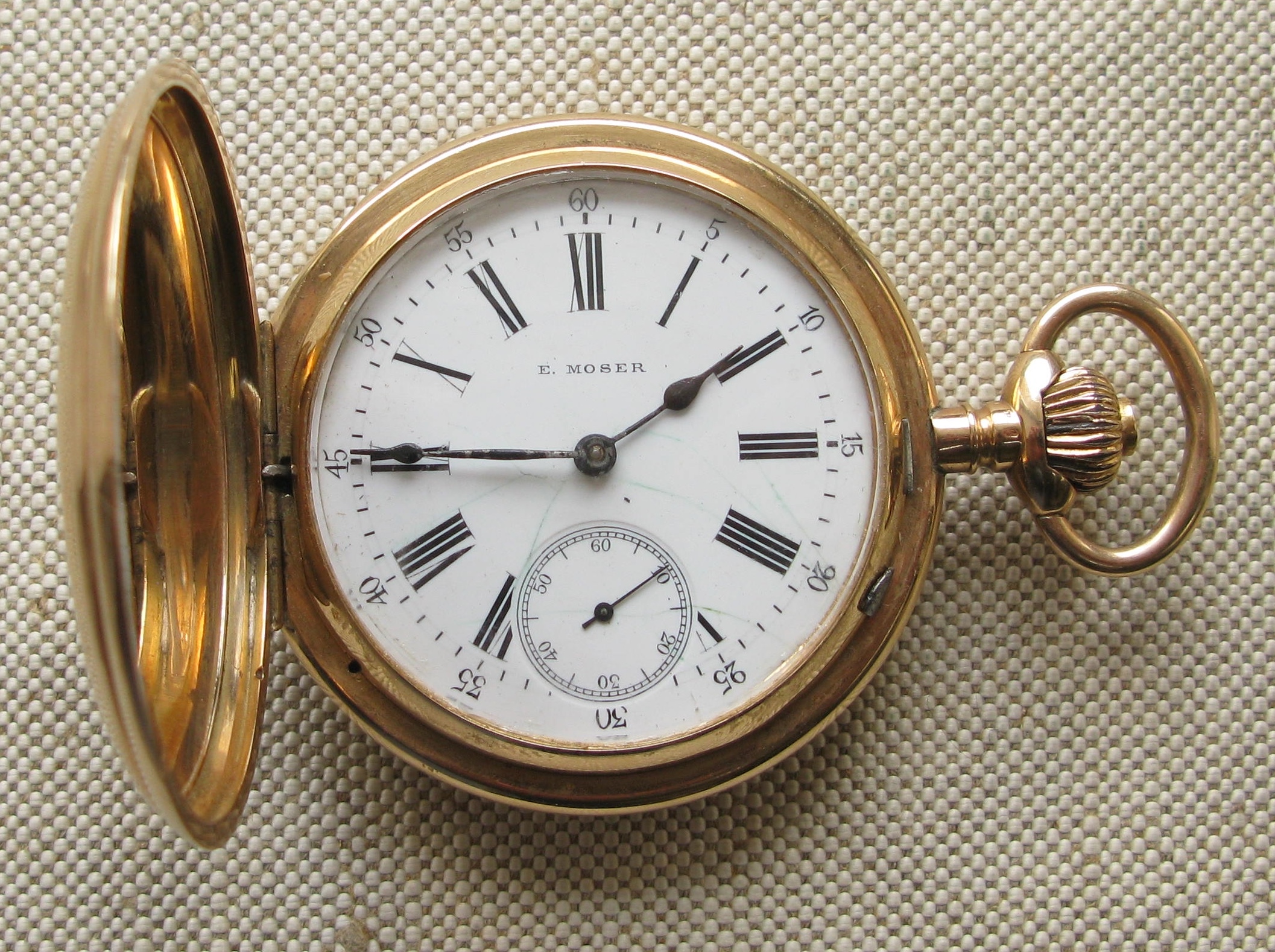 Карманные часы E. Moser, золото 56 проба, 105 грамм, 55.5мм, Швейцария.
