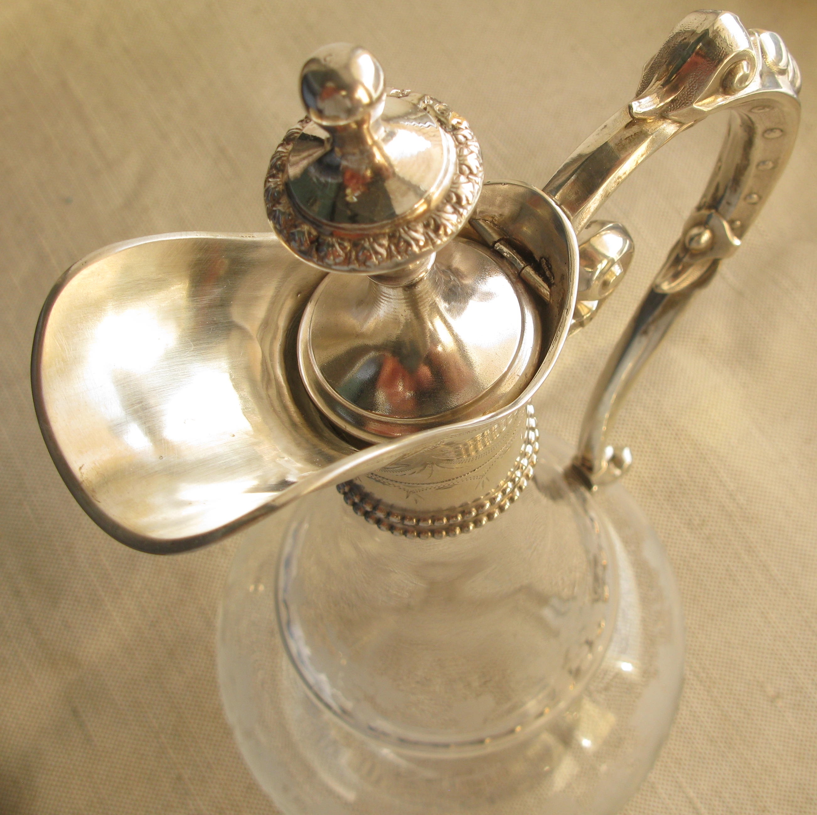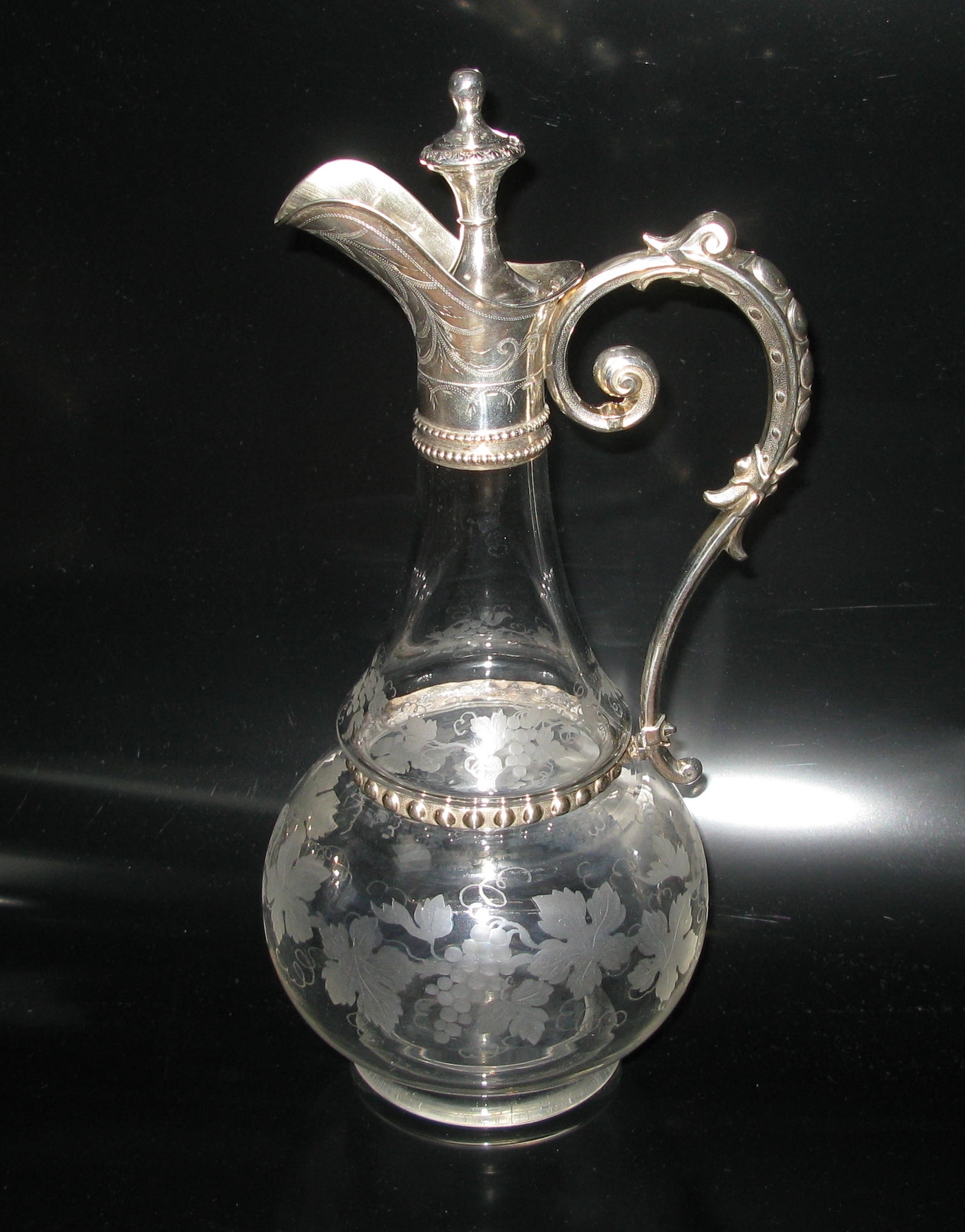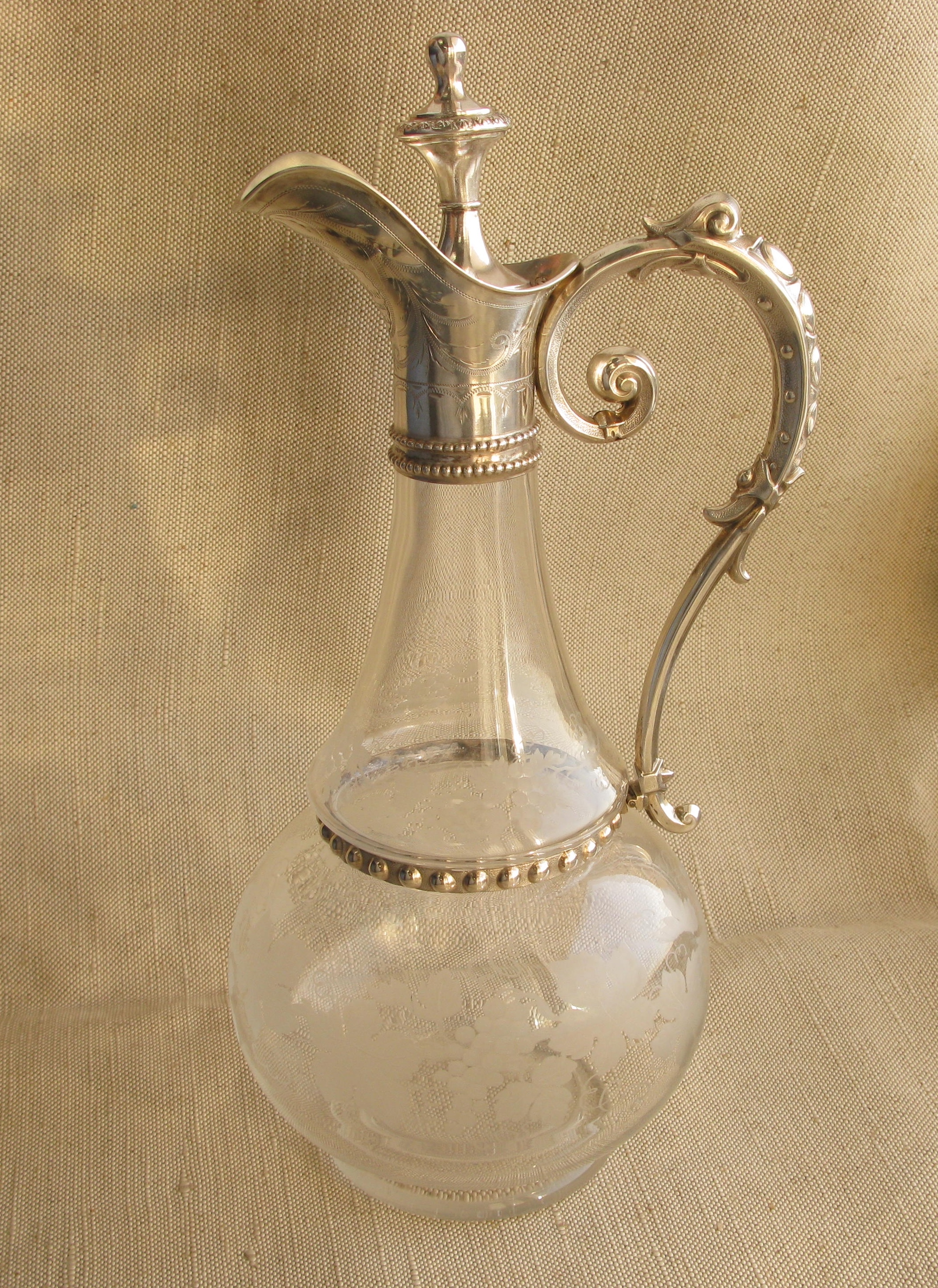 Купить Позвонить: 8 (917) 522-46-34Кувшин, стекло, серебро 800 проба, Германия, 800 проба, 1880годы. 320мм высота 120мм диаметр.