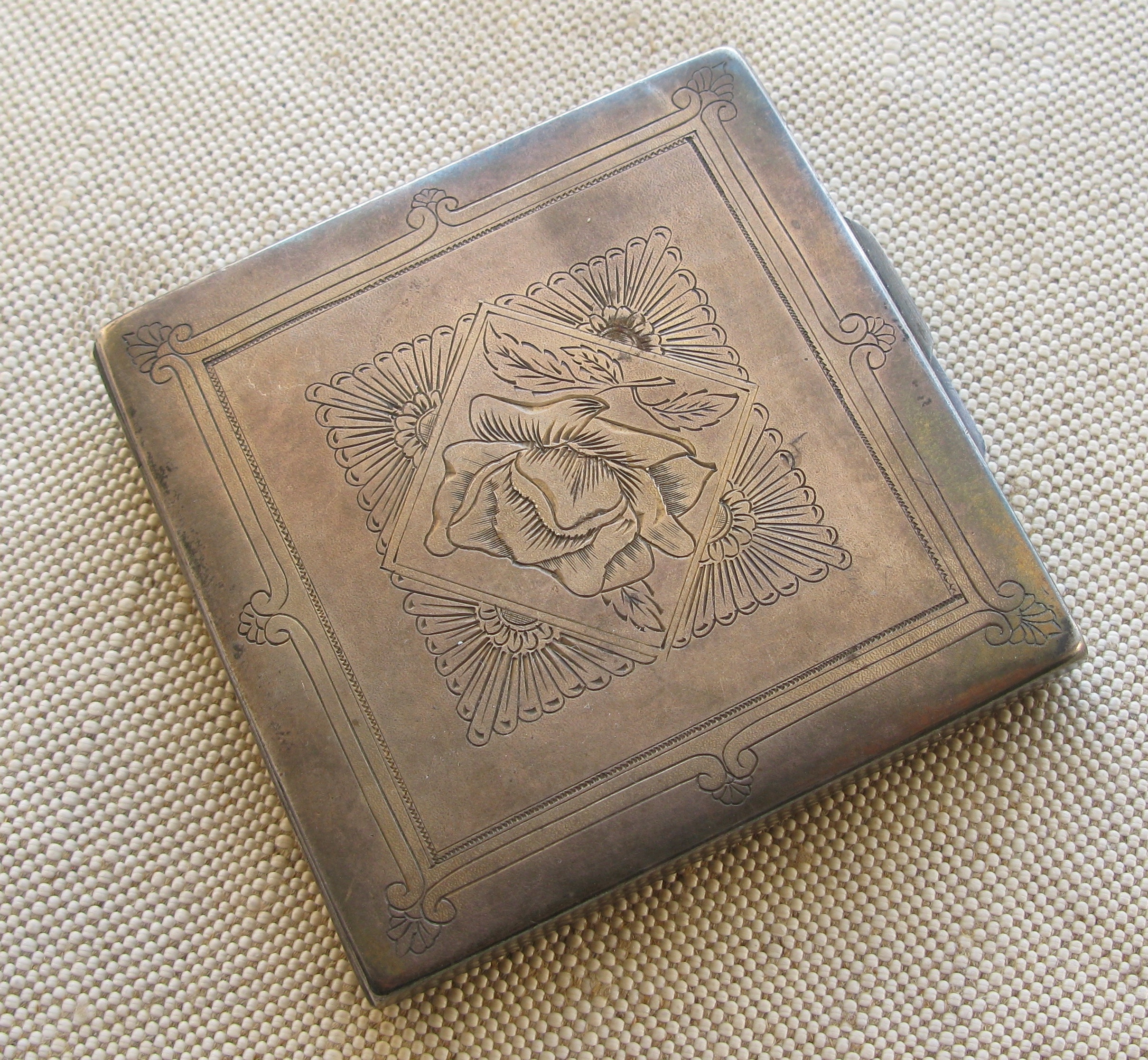 Пудреница, серебро 875 проба, СССР, Московская ювелирная фабрика, 123 грамма, 76х76мм