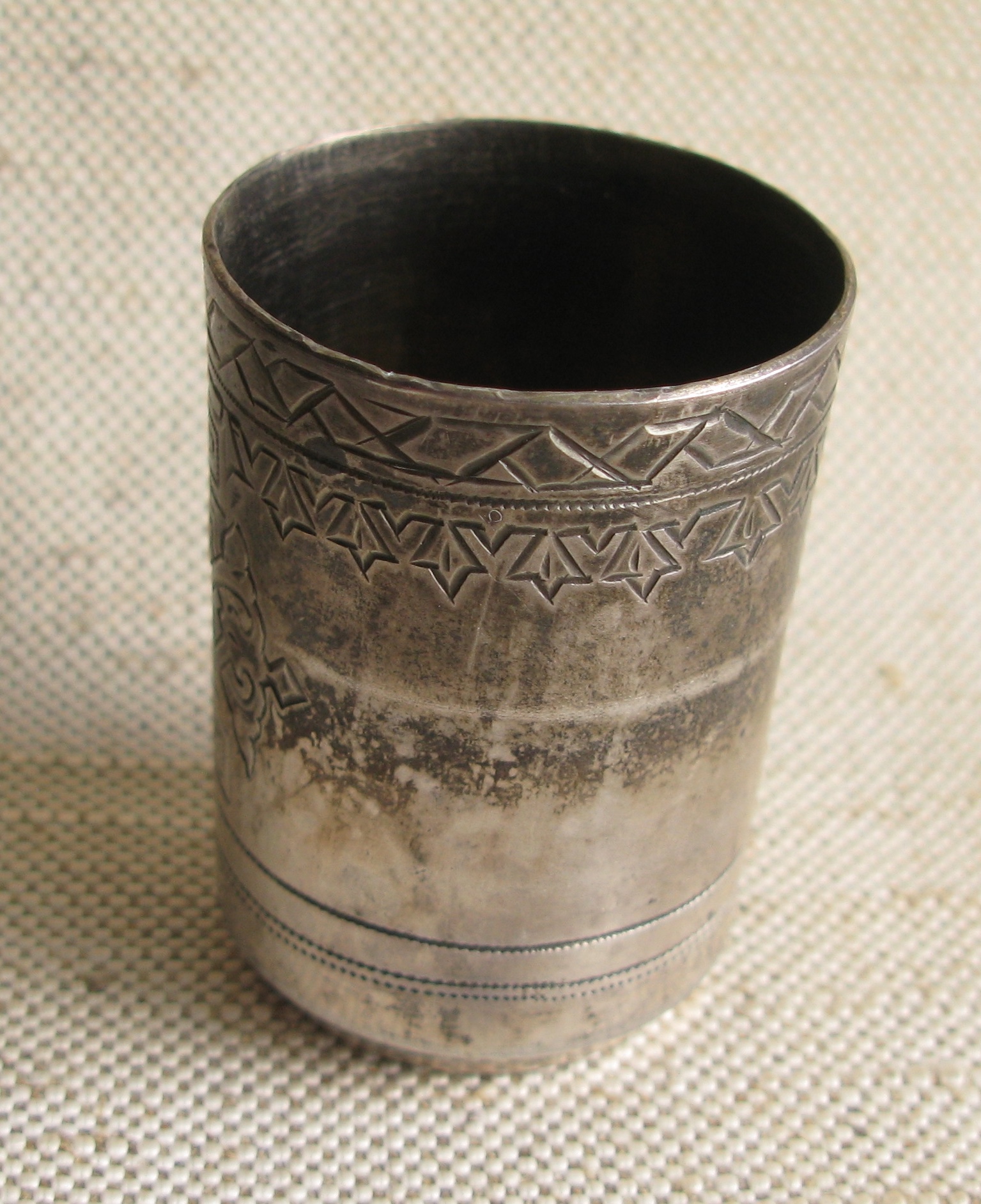 Стопка, серебро 84 проба, 1889г., Россия, Москва, 28.8 грамма. 47мм высота.